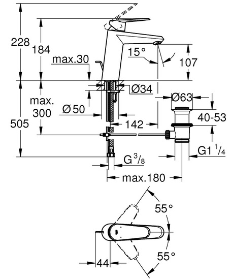 Змішувач для раковини Grohe Eurodisc Cosmopolitan одноважільний з донним клапаном хром 23448002