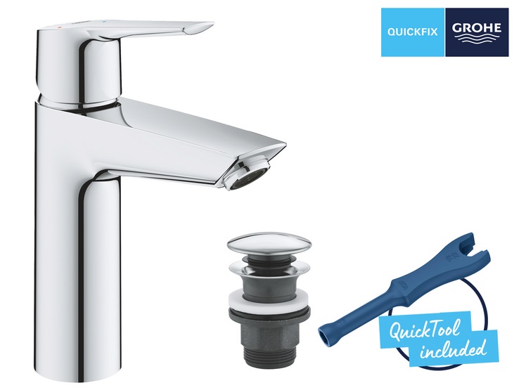 Поспішайте купити Змішувач для раковини Grohe QuickFix Start одноважільний з донним клапаном хром 23746002 за акційною ціною.