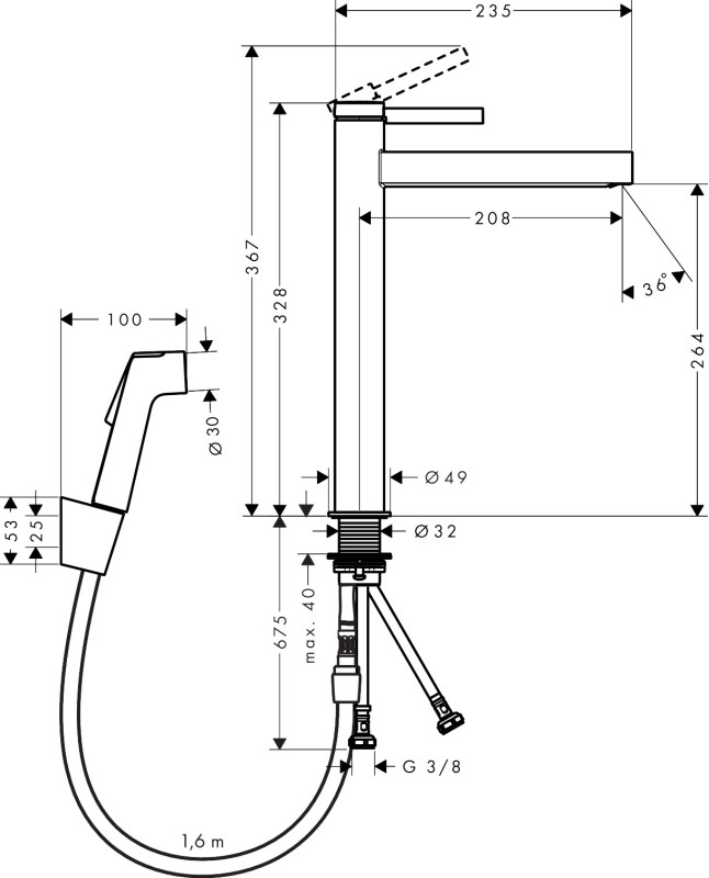 Змішувач для раковини Hansgrohe Finoris з гігієнічним душем чорний матовий хром 76220340