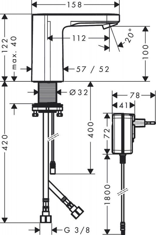 1) Змішувач для раковини Hansgrohe Vernis Blend електронний з регулюванням температури