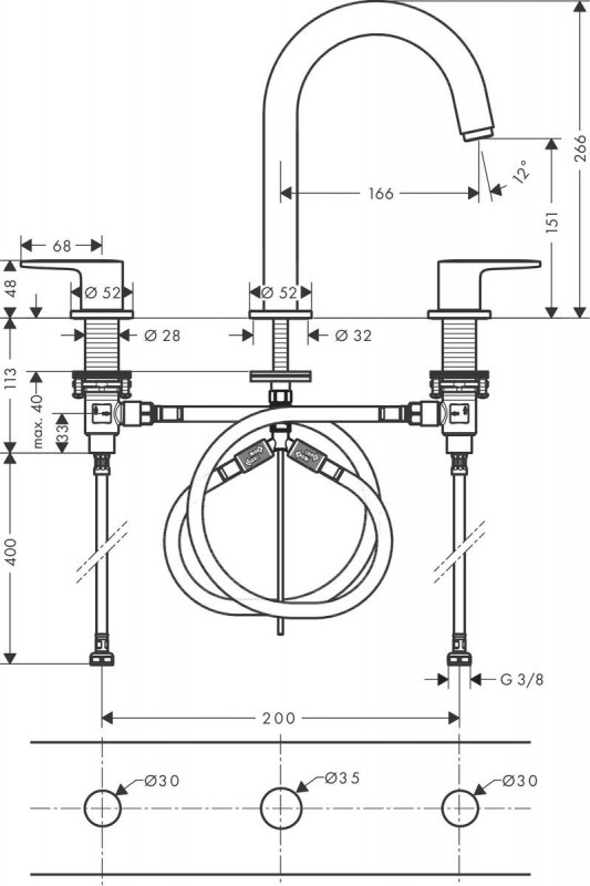 - складається з: змішувача для раковини на 3 отвори, зливного набору