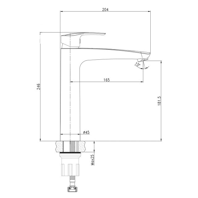 - Висота струменя: 181.5 мм