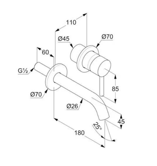 Змішувач для раковини Kludi Bozz настінний одноважільний брашований нікель PVD 38244N576