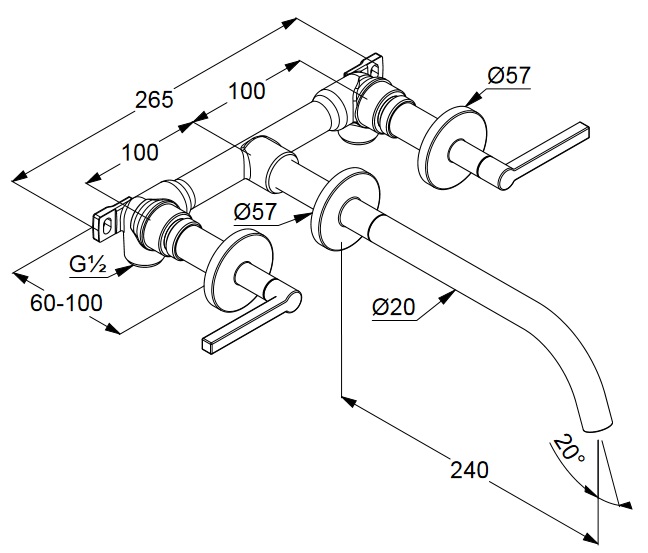 Змішувач для раковини Kludi Nova Fonte Puristic 240 настінний на 3 отвори чорний матовий