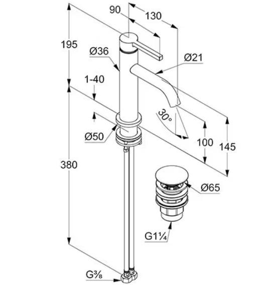 Змішувач для раковини Kludi Nova Fonte з донним клапаном сірий матовий
