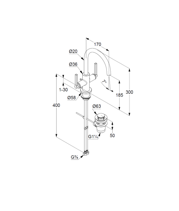 1) Змішувач для раковини Kludi Nova Fonte Puristic Двохважеля хром