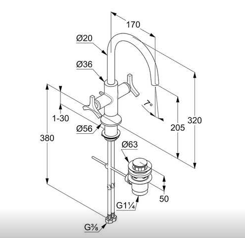 1) Змішувач для раковини Kludi Nova Fonte Deco двухвентильний хром