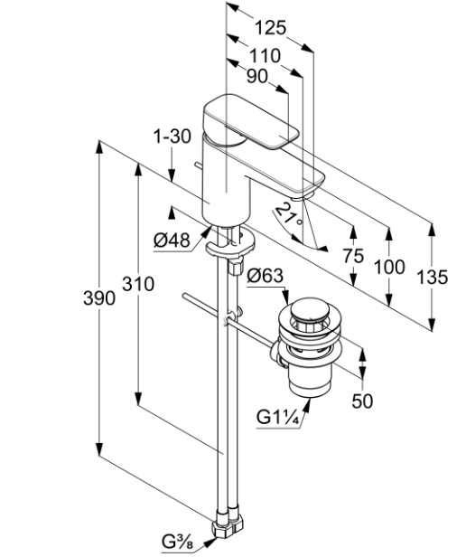 - одноважільний змішувач на умивальник 75 DN 15