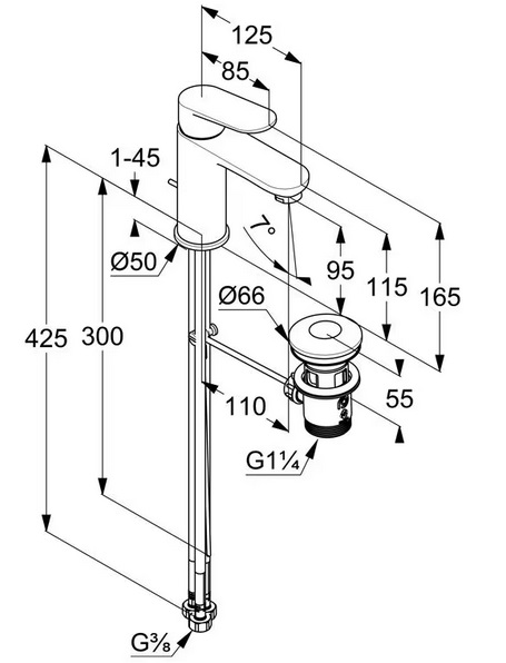 Змішувач для раковини Kludi X1 з донним клапаном хром