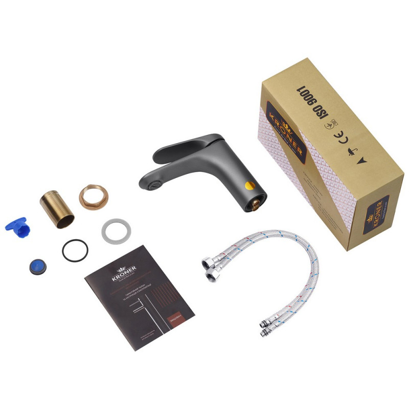 Змішувач для раковини Kroner KRM Linz-GRN010 одноважільний сірий CV034903