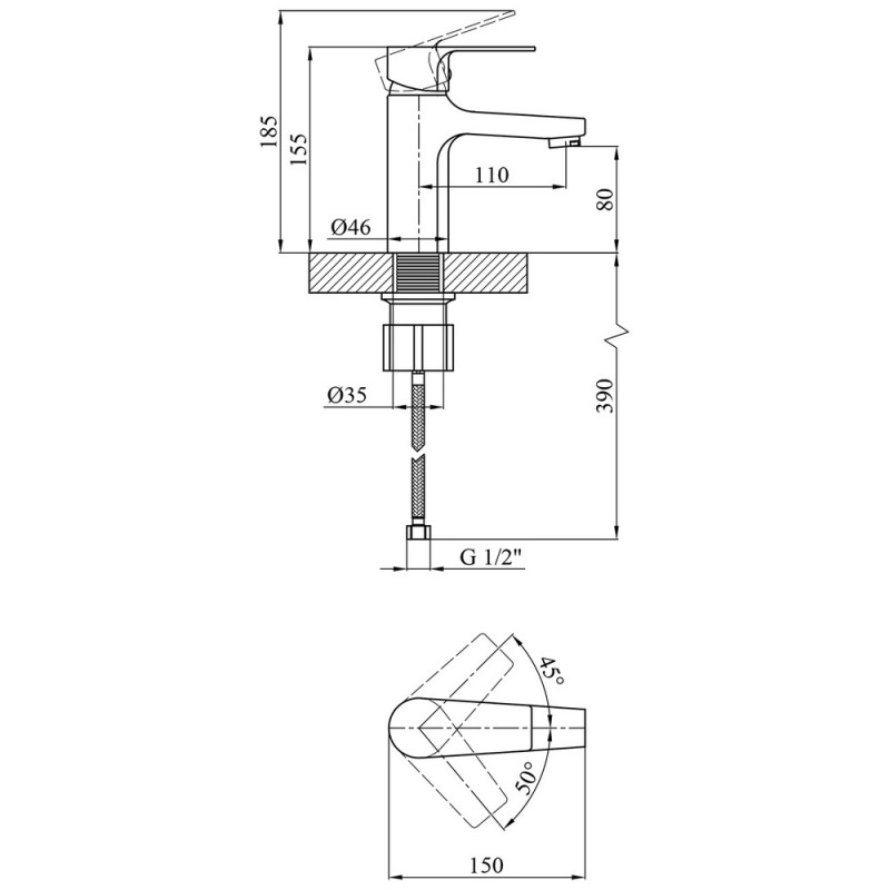 Змішувач для раковини Kroner KRM Oker-C010 одноважільний хром CV019667