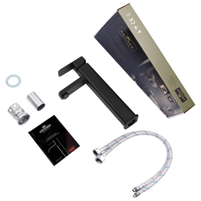 Змішувач для раковини Kroner KRP Edelstahl Kubus-SCH010-3 одноважільний чорний CV031191
