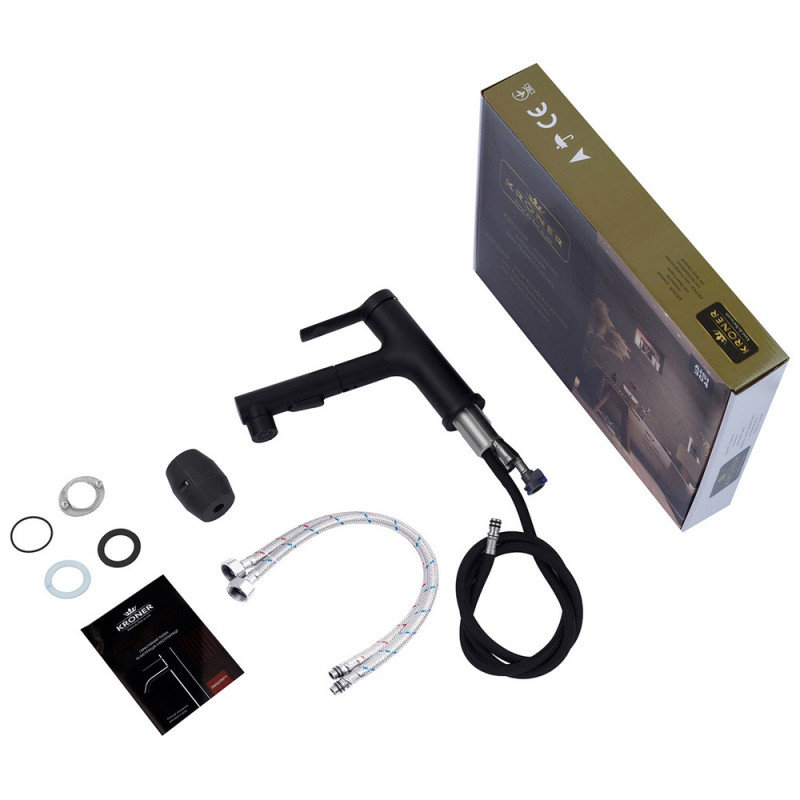 Змішувач для раковини Kroner KRP Edelstahl Klassisch-SCH030-T з висувною лійкою чорний CV032497