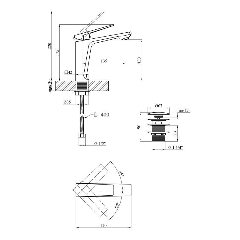 - простий монтаж завдяки врізному способу монтажу та гнучким шлангам у комплекті;