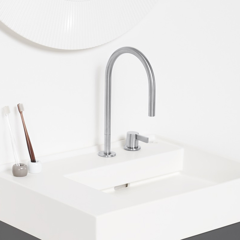 Змішувач для раковини Laufen Kartell одноважільний на 2 отвори нержавіюча сталь з PVD-покриттям