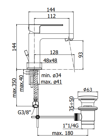 - Розмір врізного отвори: min. Ø 34 мм, max. Ø 41 мм