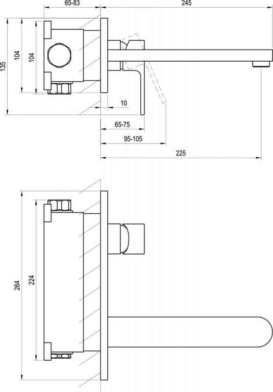 - важільний змішувач для прихованого настінного монтажу з R-box