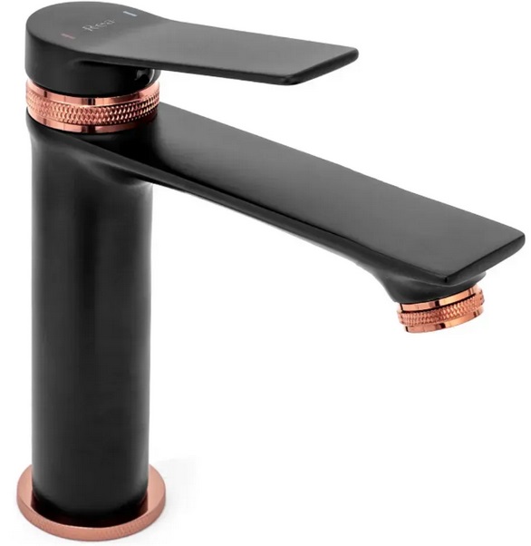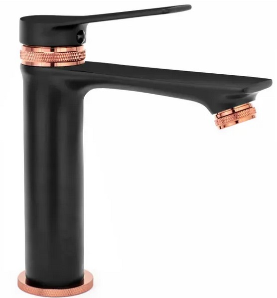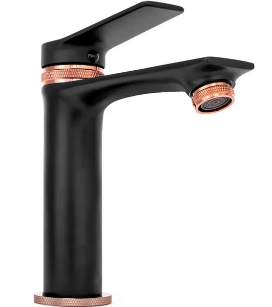 Змішувач для раковини Rea Viral одноважільний чорний/рожеве золото REA-B2025