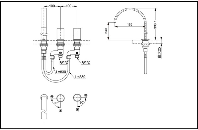 - Висота змішувача, мм: 338.7