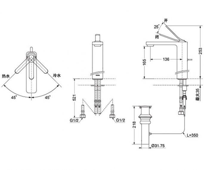 Змішувач для раковини TOTO Renesse врізний одноважільний хром DL349-1E