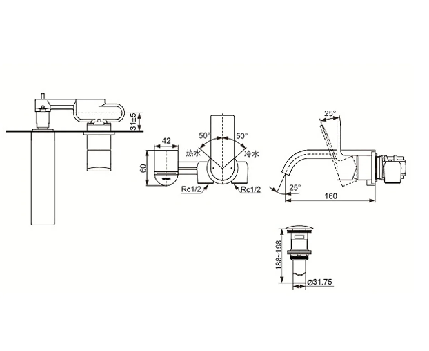 1) Змішувач для раковіниTOTO Contemporary настінний на 2 отвори змішувач хром