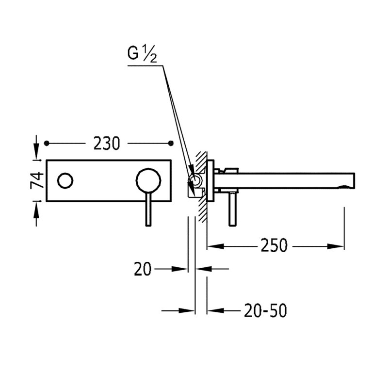 Змішувач для раковини Tres Alplus настінний одноважільний хром 20320001