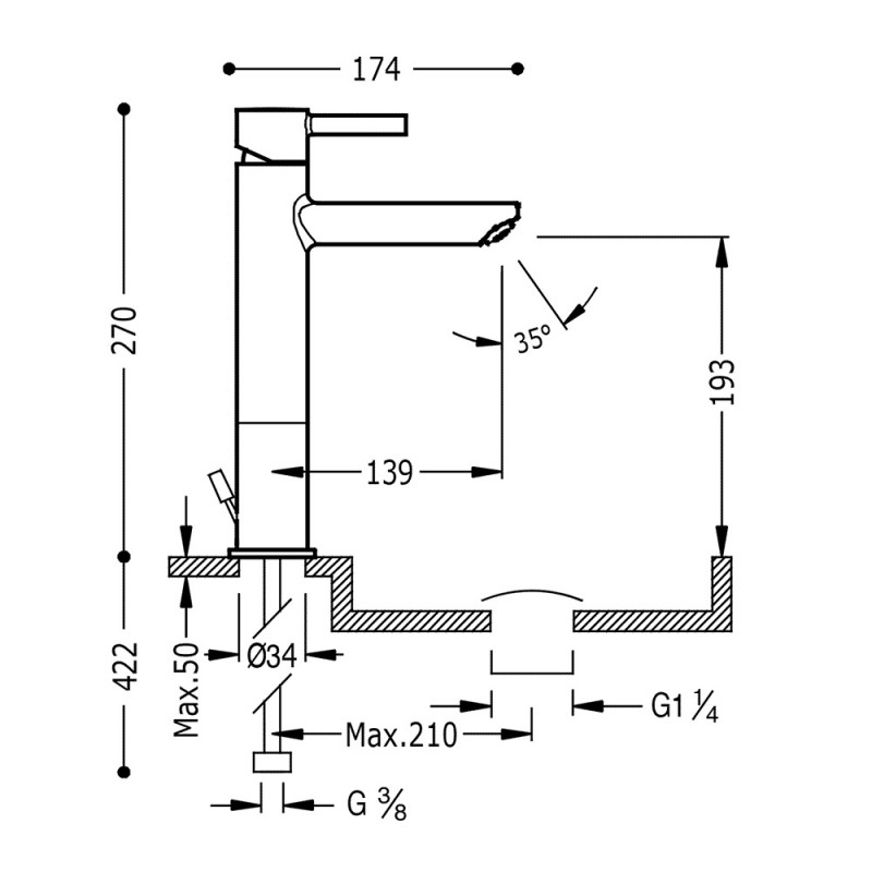 Змішувач для раковини Tres Alplus високий одноважільний хром 20321701