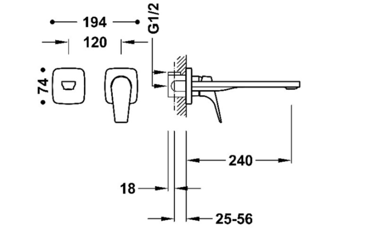 - одноважільний настінний змішувач для раковини прихованого монтажу