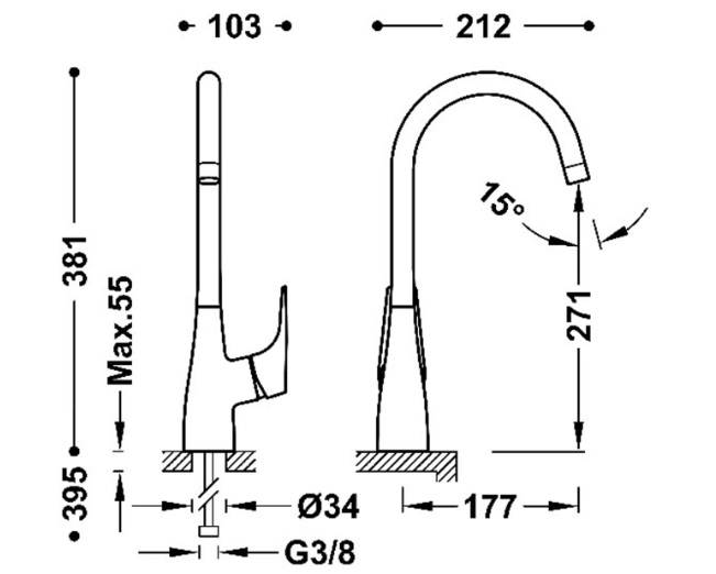 - Підведення: G ⅜