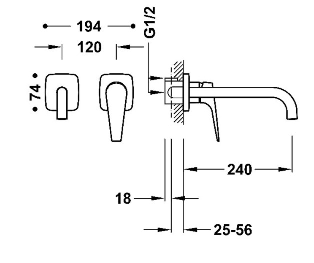 - одноважільний настінний змішувач для раковини прихованого монтажу