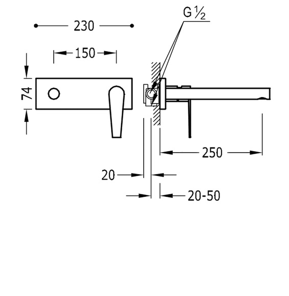 Змішувач для раковини Tres Class-Tress настінний одноважільний хром 20520001
