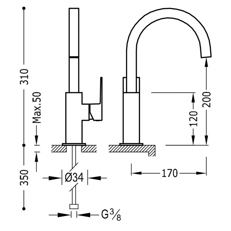 1) Змішувач для раковини Tres Cuadro Сolors змішувач золото матовий