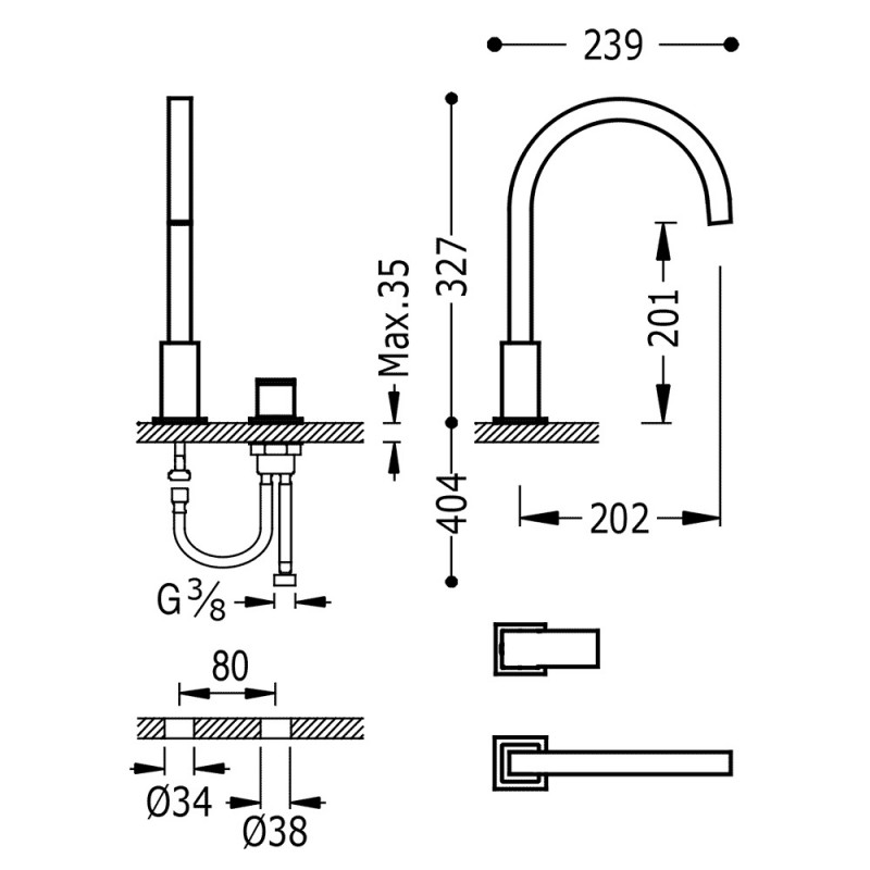 1) Змішувач для раковини Tres Cuadro Сolors консольний змішувач золото матовий