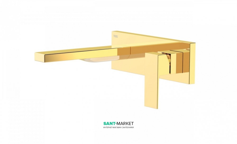 1) Змішувач для раковини Tres Cuadro Сolors настінний змішувач золото