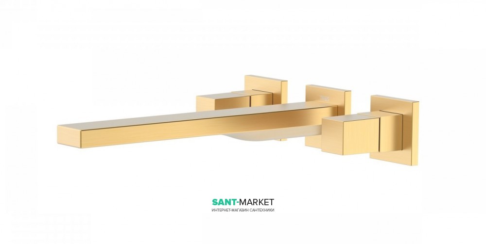 Змішувач для раковини Tres Cuadro Сolors настінний двухвентильний золото матовий