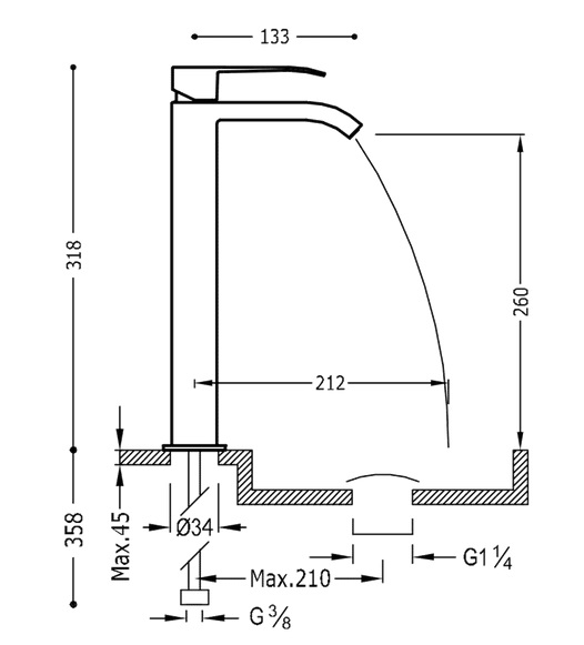 1) Змішувач для раковини Tres Cuadro colors змішувач сталь