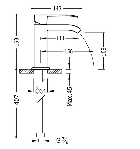 - Висота струменя: 108 мм