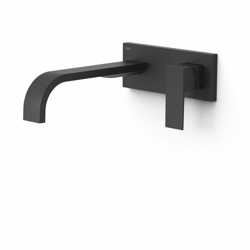 1) Змішувач для раковини Tres Cuadro Exclusive настінний одноважільний чорний матовий