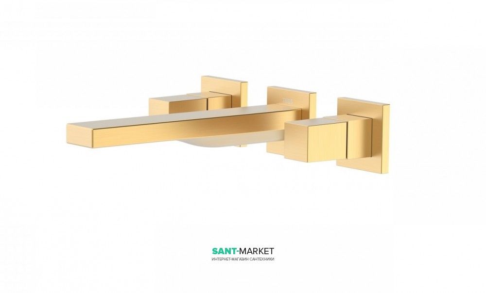 Змішувач для раковини Tres Cuadro Сolors настінний двухвентильний золото матовий