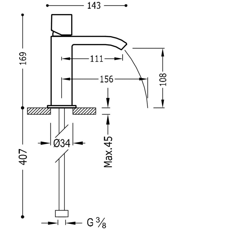 1) Змішувач для раковини Tres Cuadro Tres змішувач з каскадним виливом хром