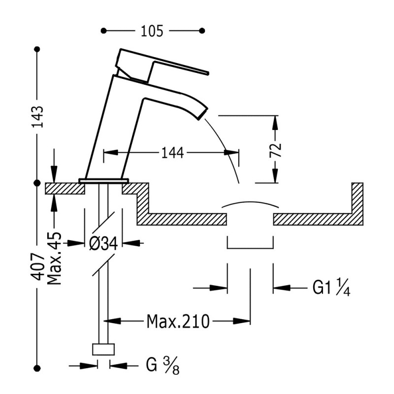 1) Змішувач для раковини Tres Cuadro Tres змішувач з каскадним виливом хром