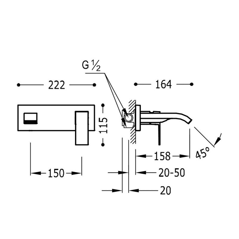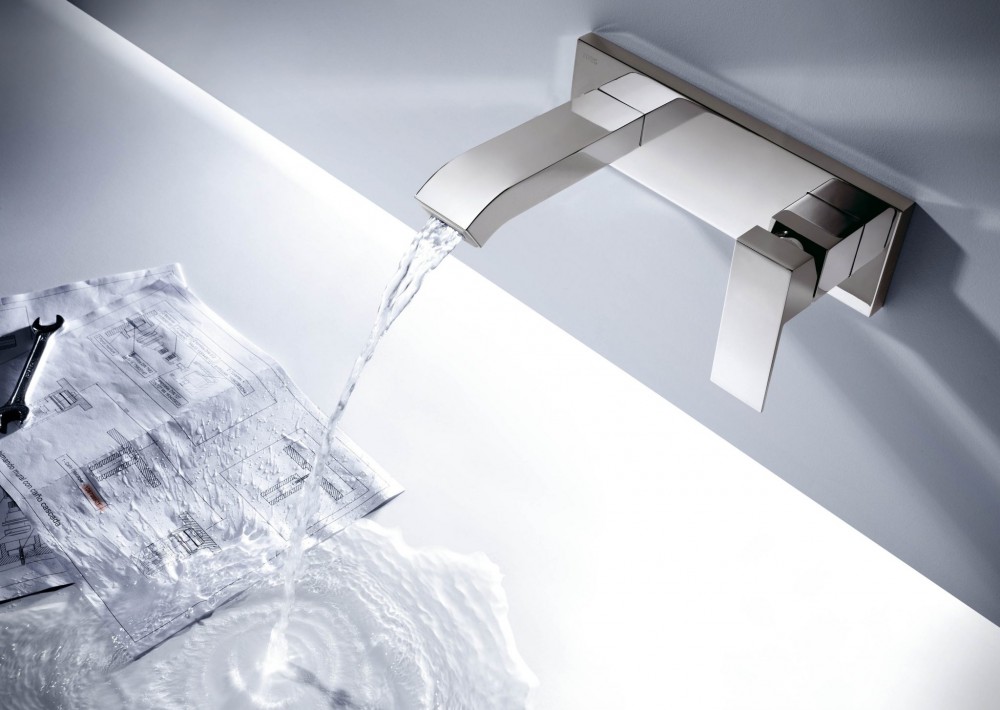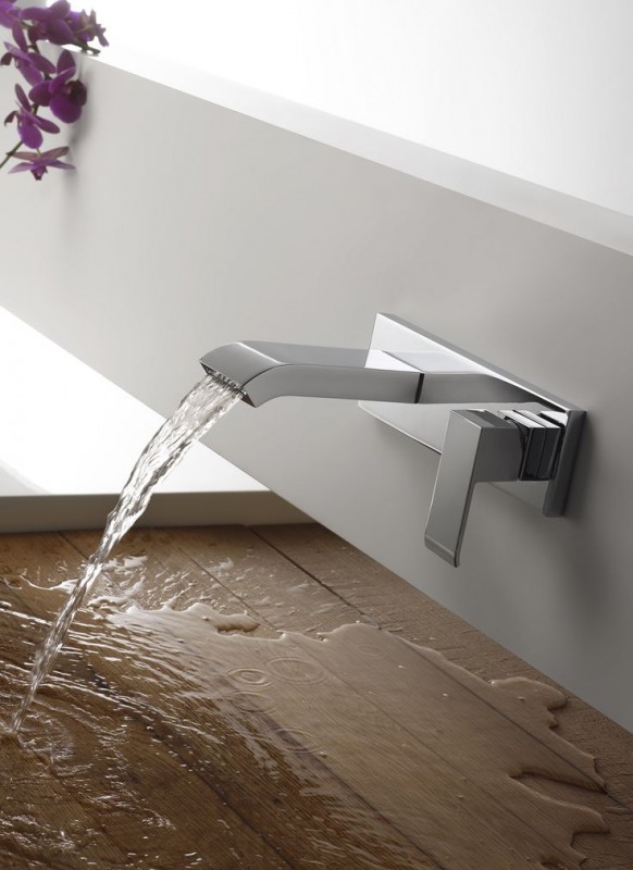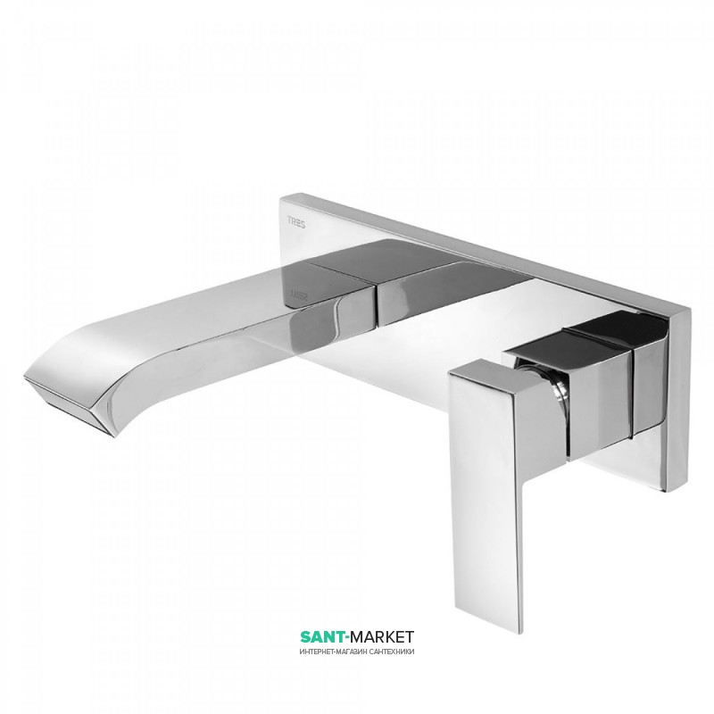1) Змішувач для раковини Tres Cuadro Tres настінний змішувач з каскадним виливом хром
