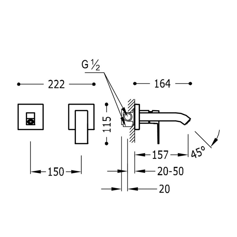 Змішувач для раковини Tres Cuadro Tres настінний змішувач хром