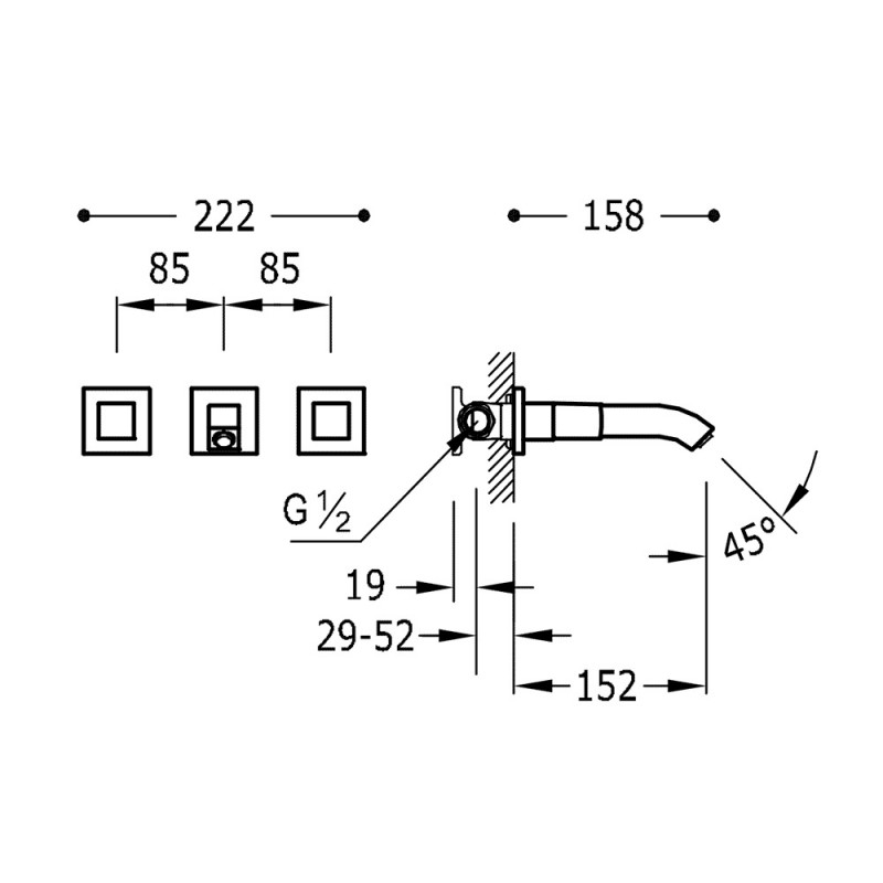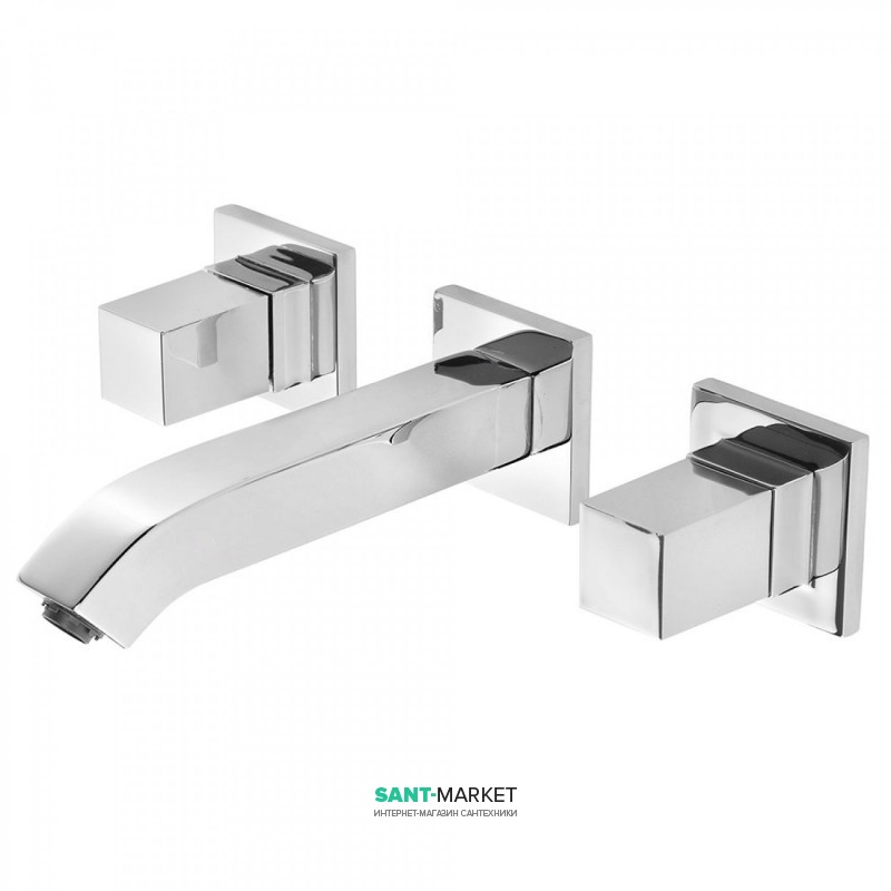 1) Змішувач для раковини Tres Cuadro Tres настінний двухвентильний хром