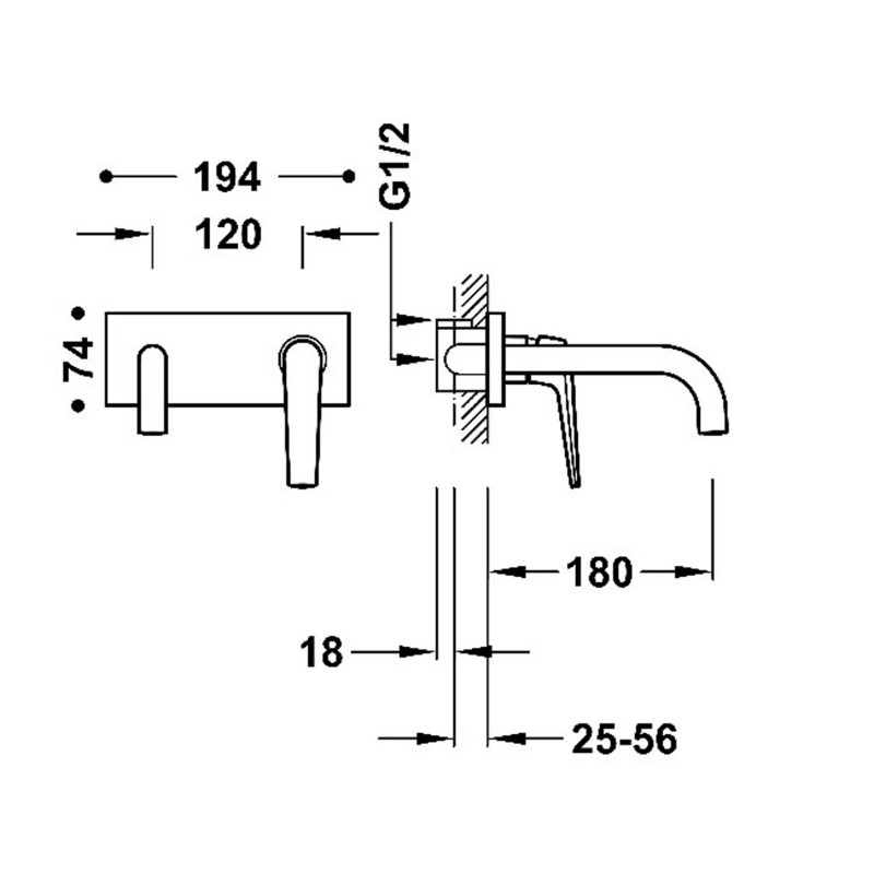 Змішувач для раковини Tres Fuji одноважільний настінний сталь