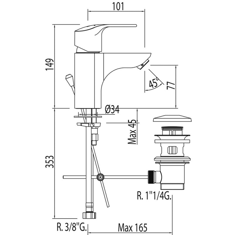 Змішувач для раковини Tres К-Tres змішувач з донним клапаном хром