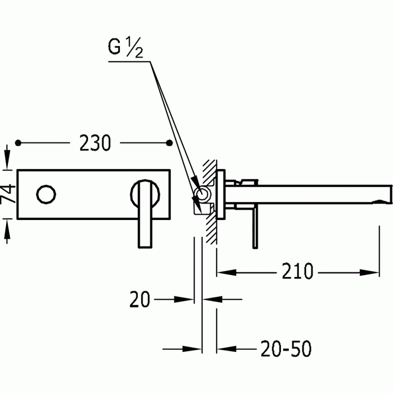 Змішувач для раковини Tres Lex-tres одноважільний настінний вилив 210 мм хром 08120021