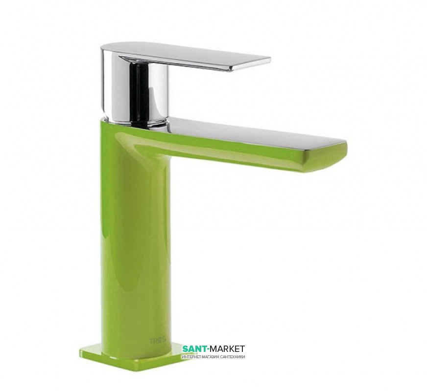 1) Змішувач для раковини Tres Loft colors змішувач зелений / хром