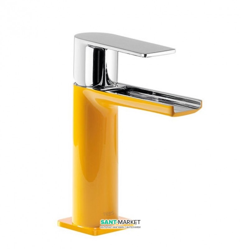 Змішувач для раковини Tres Loft colors одноважільний з відкритим каскадним виливом янтарно-жовтий/хром 20011001AM
