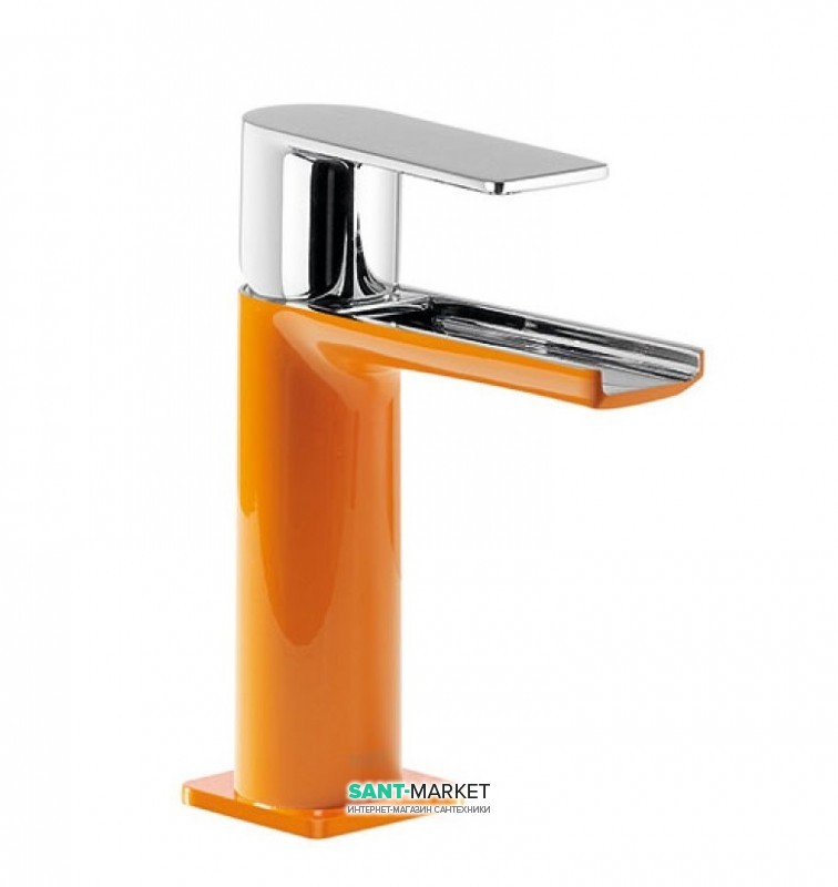1) Змішувач для раковини Tres Loft colors змішувач з відкритим каскадним виливом апельсиновий / хром
